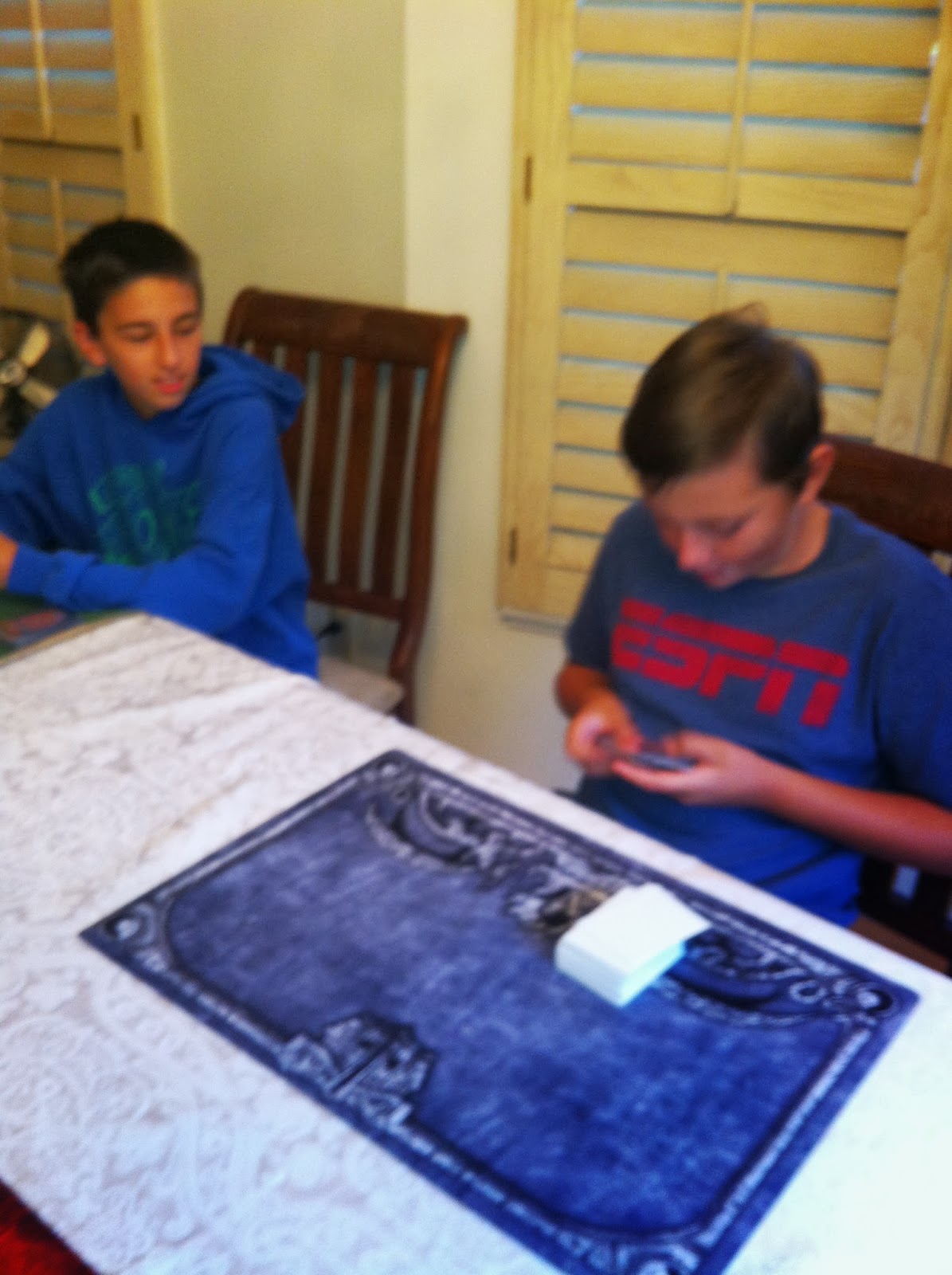 After that we went into the Two Headed Giant match which is really what the boys come over to play–they love the head to head team action. Also, Matt & Evan were both undefeated, so having them on opposing teams set up a great match.