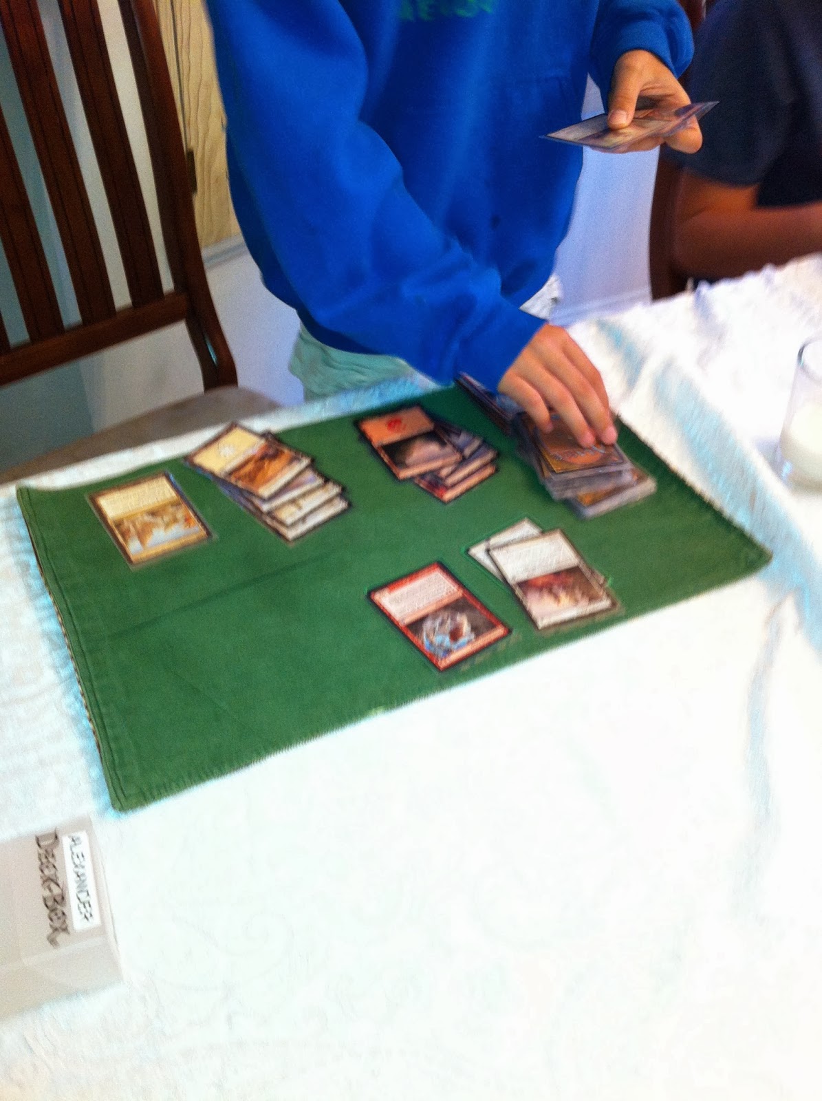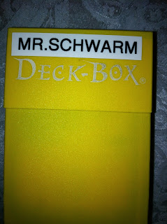 we are in training for the Theros Game day, so Alexander made everyone these great labels for their deck boxes.