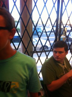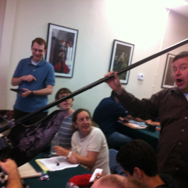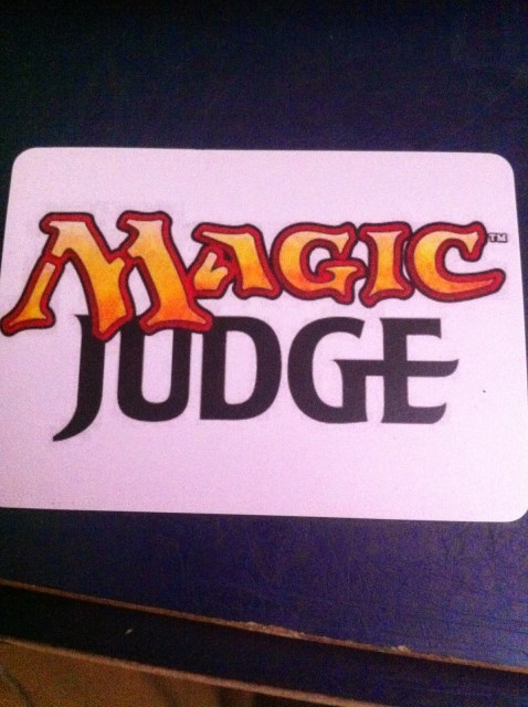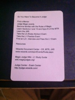 Magic Judge Eric is in the background–he is mentoring brian and I and gave us these great cards for training