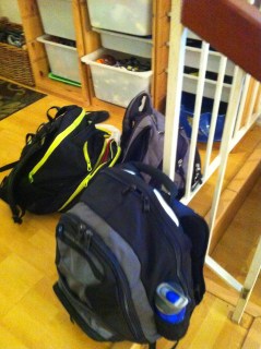 The back packs piled up