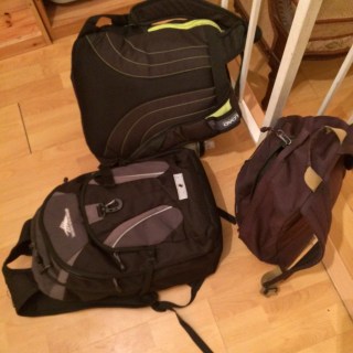 Backpacks were piled high when I got there.