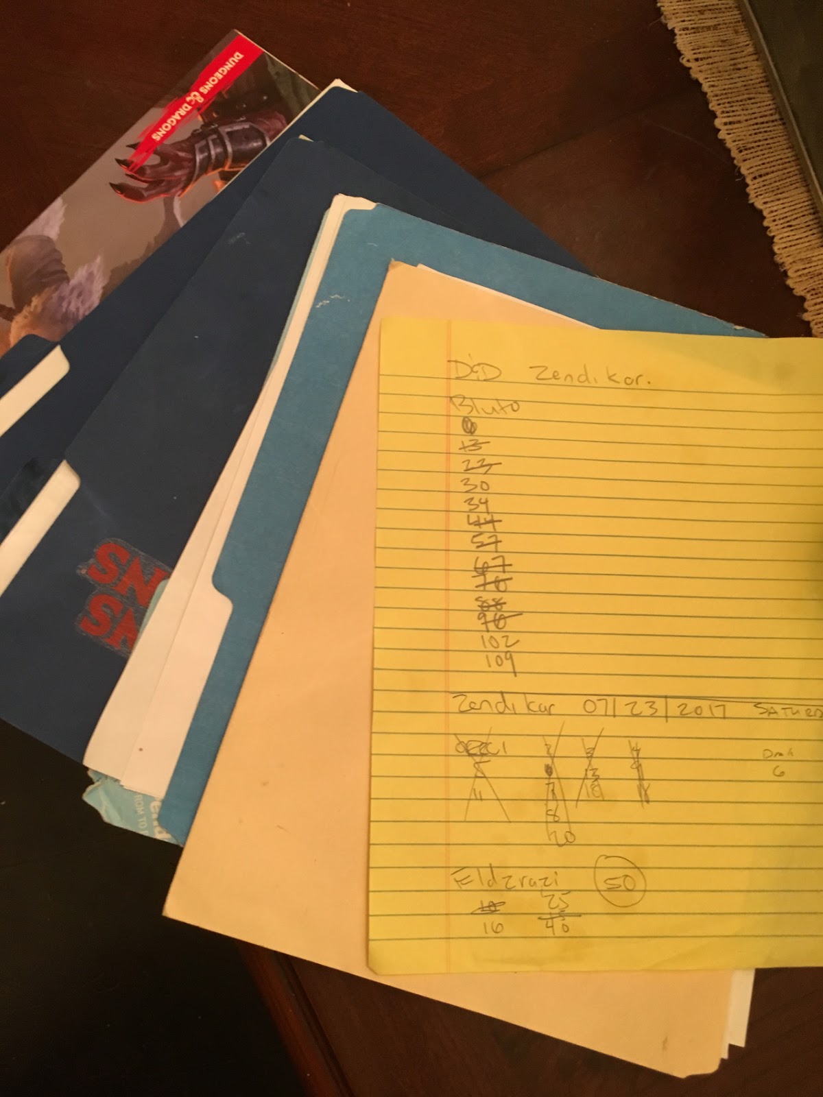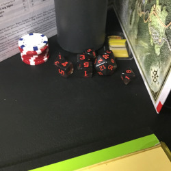 Cody left his backpack with his character sheets at home. This was evidently my fault since he had asked if I would bring it. Lisa brought his backpack to the shop which had his dice and mini’s, but the she took his folder out to confirm it was in the backpack and left it on the kitchen table.
