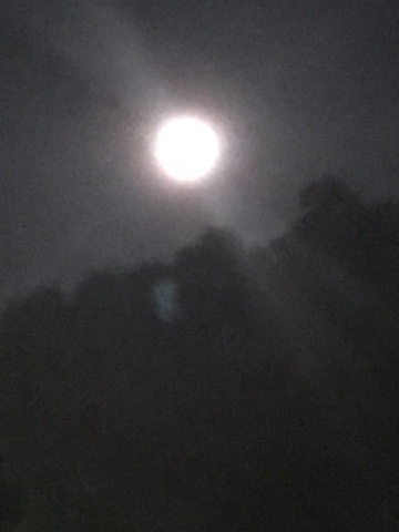 The play was fun & hard to follow. At intermission we went to Dunkin Donuts under the full moon.