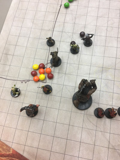 The goblins are lighting the town on fire with skittles, the bugbears are looting, the ogre is launching goblins. The green skittled residents of Goldenfields are running to save their lives.