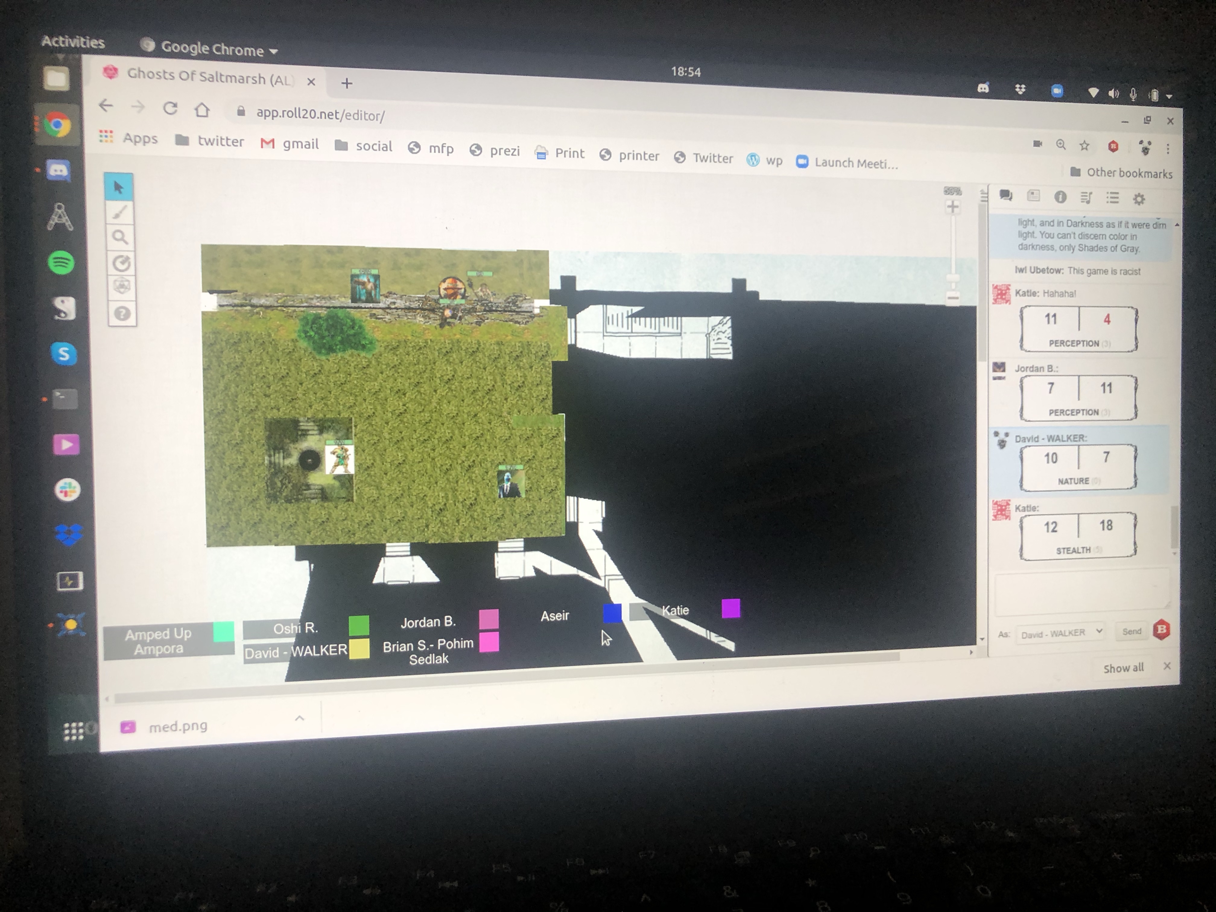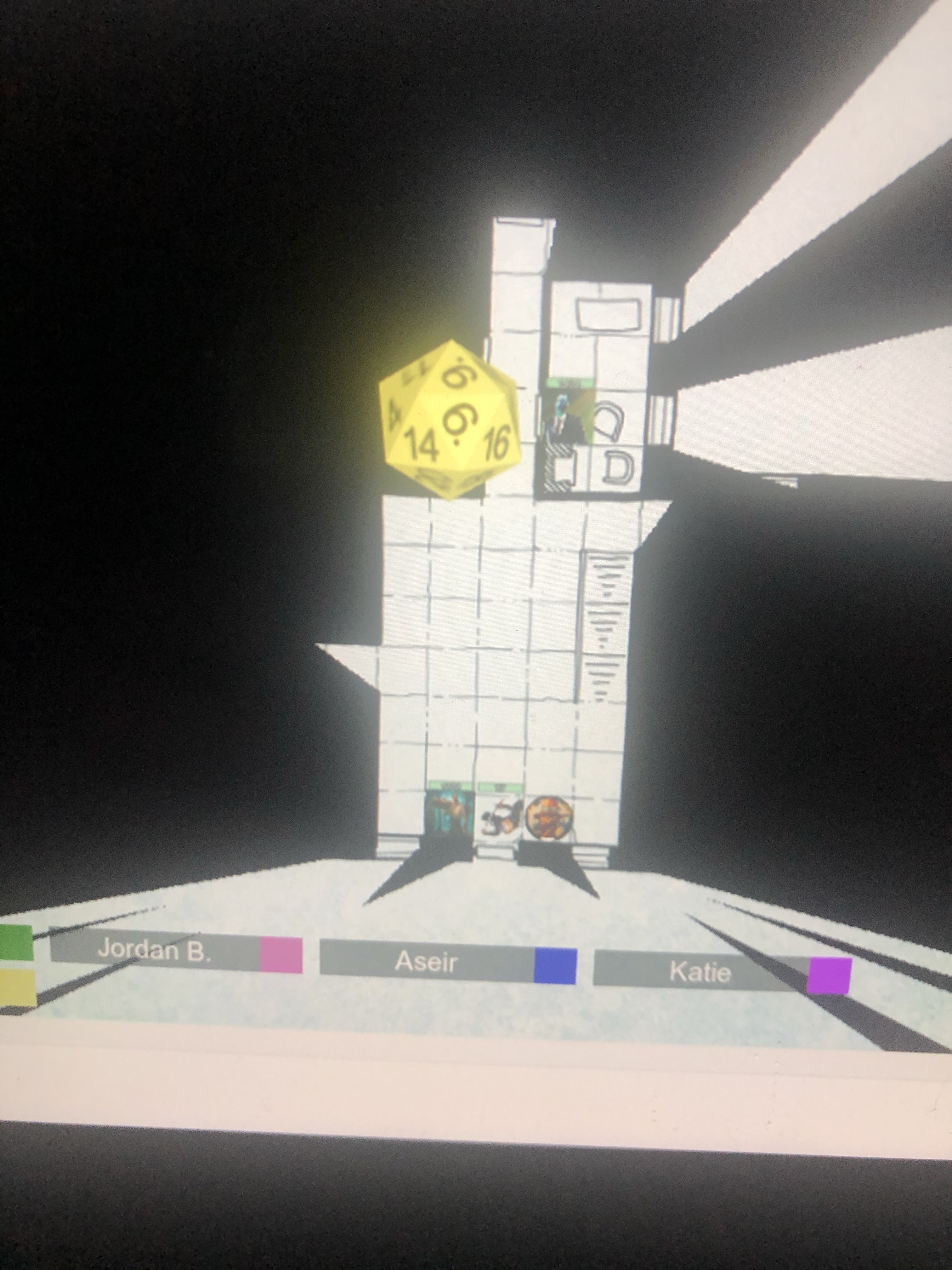 DM Richard is getting really good at ROLL20–we are using fog of war lighting to something which makes it really cool