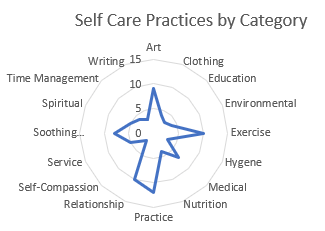 During Friday Frogs, I continue to collect data on self-care. So far, I have collected 93 self-care actions: