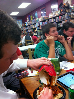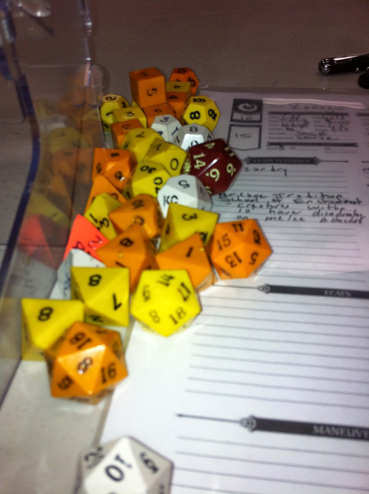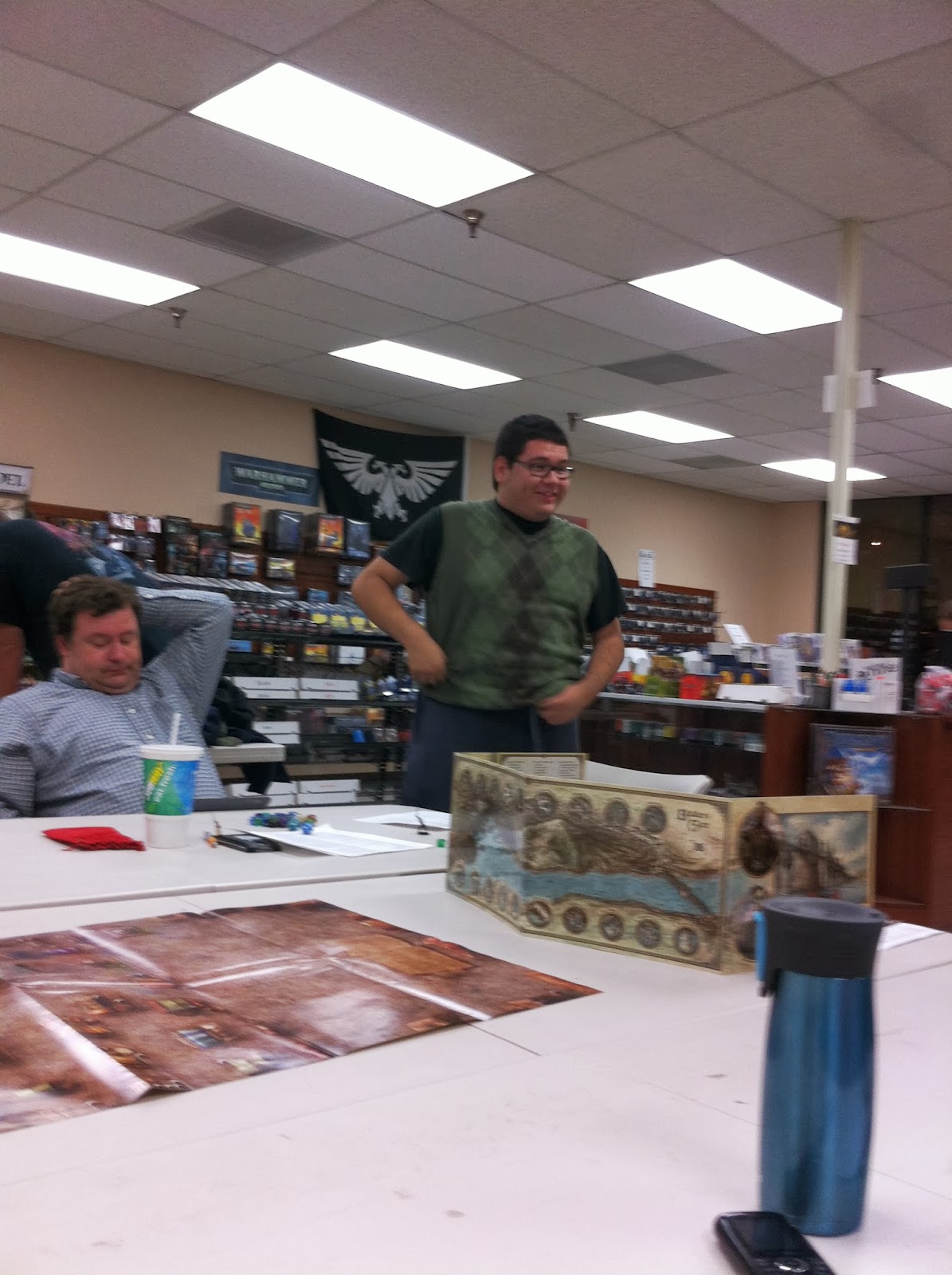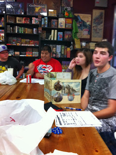 This was the second week that Jack, Brian, Scott, and I had played there and it was loads of fun. DM Nick was again behind the screen doing an awesome job. Eric and Sara were there again–Eric is a fun roll player and really gets into his characters drunkenness.