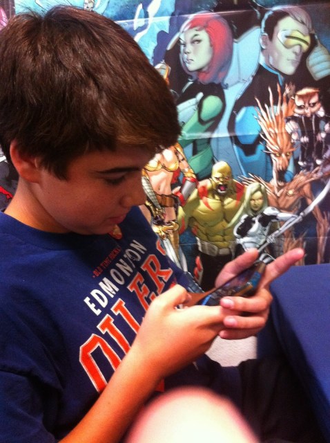 We got there a bit early and hung out–lots of Long Beach Comic Con talk–Geoff Johns gave a insider talk that the comic kids got invited to & they were STOKED.