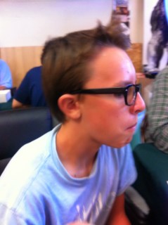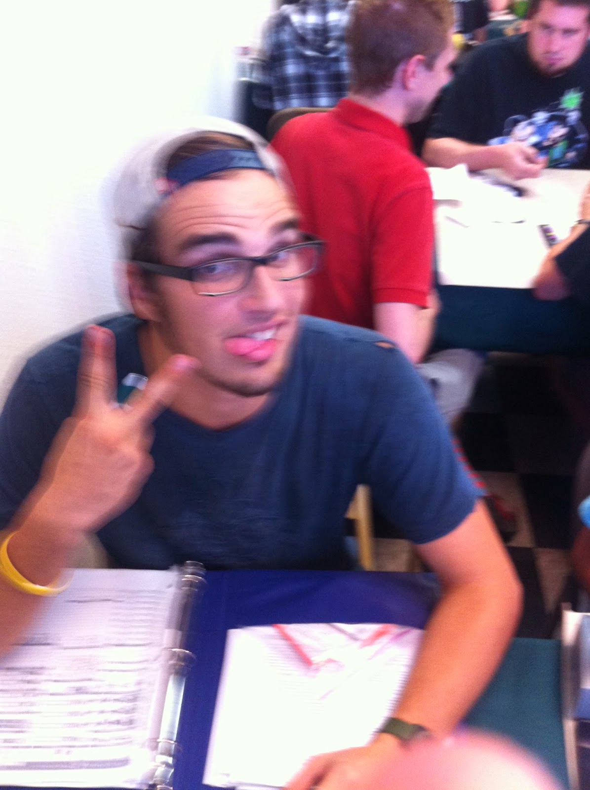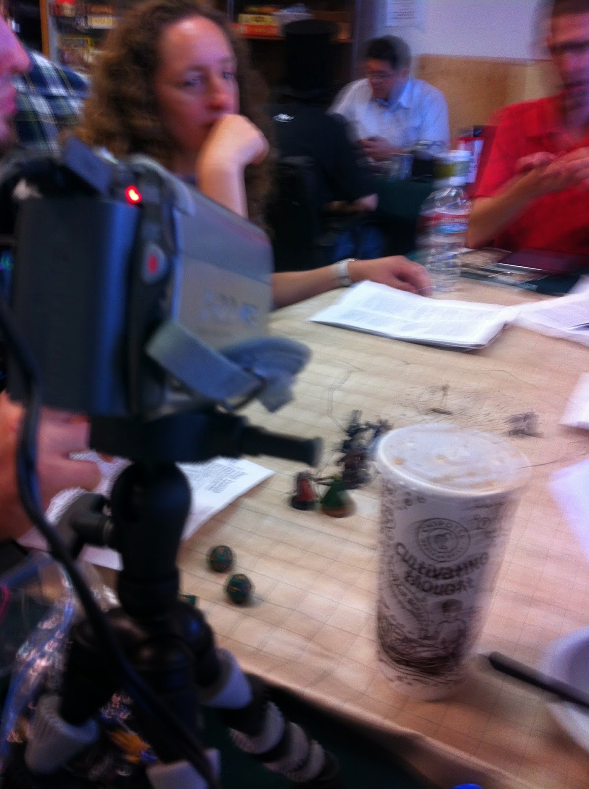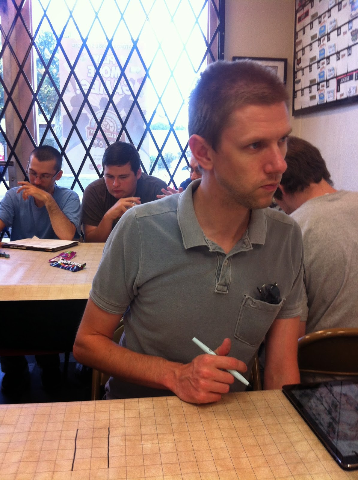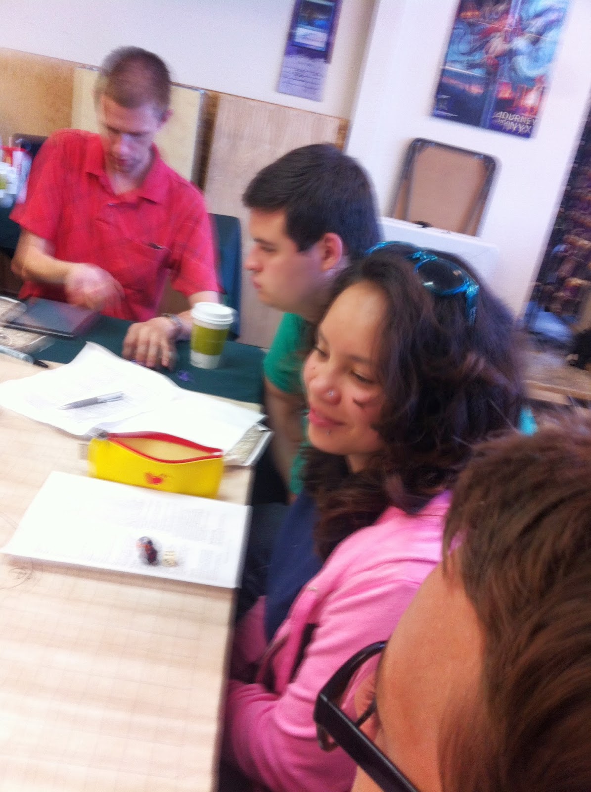 John was still yelling at our table–I think this is on the topic of Halo.The shop is still somewhat crowded with Magic Players.