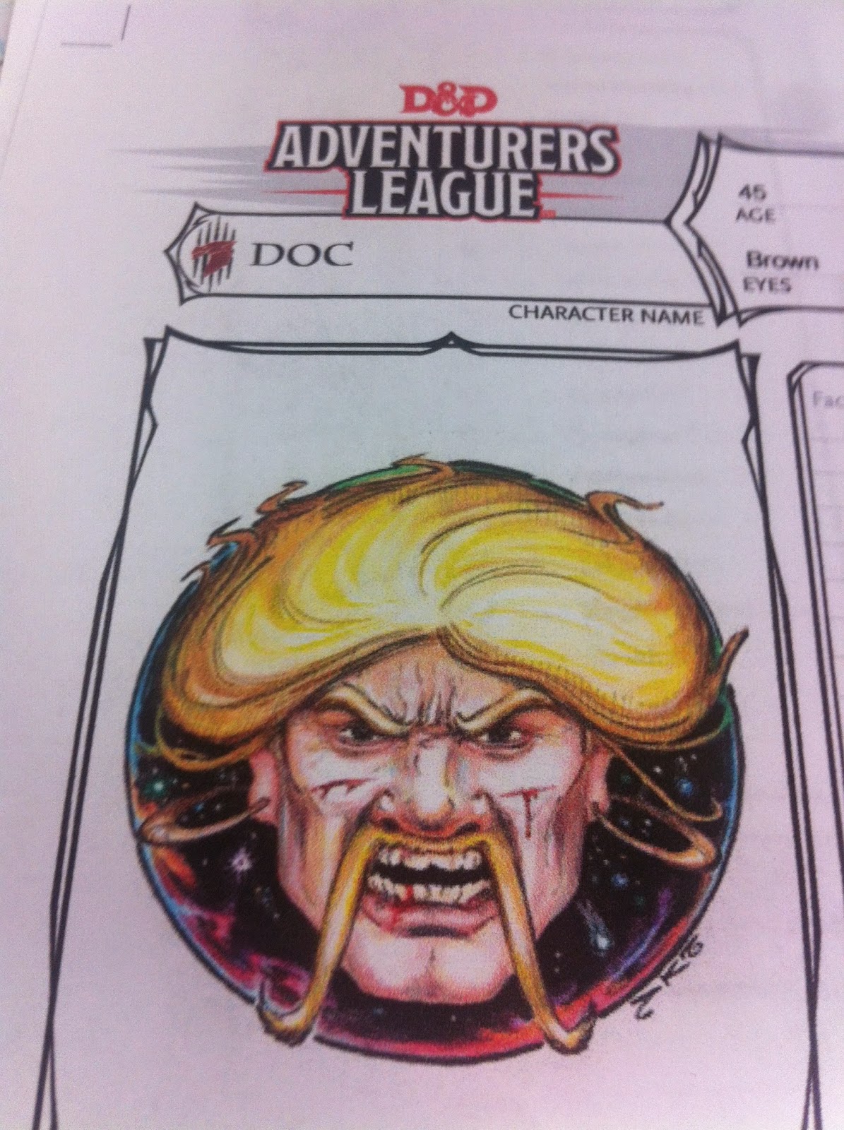 We were surrounded & I ran. No one followed. Messy.Here is my portrait of Brian’s Gnome Druid.